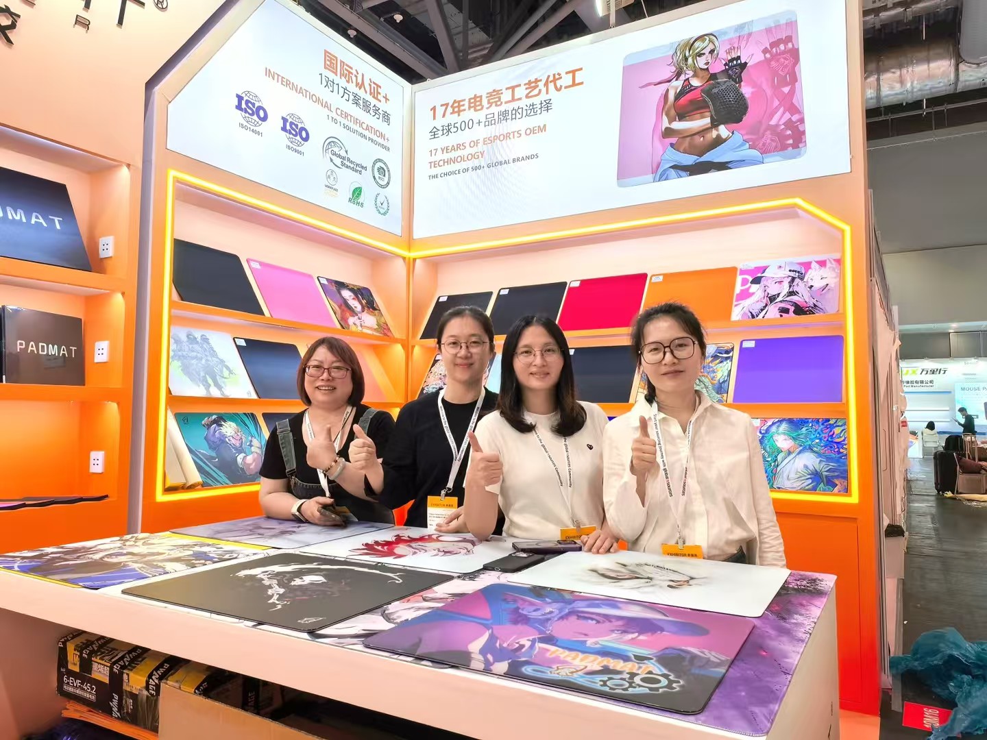 As a leading gaming mouse pad manufacturer in China, we participate in major international exhibitions every year to showcase our newest surface technologies, OEM/ODM capabilities, and customized solutions for global brands. In 2025, we will continue expanding into more global markets, bringing our latest mouse pad products to customers around the world.